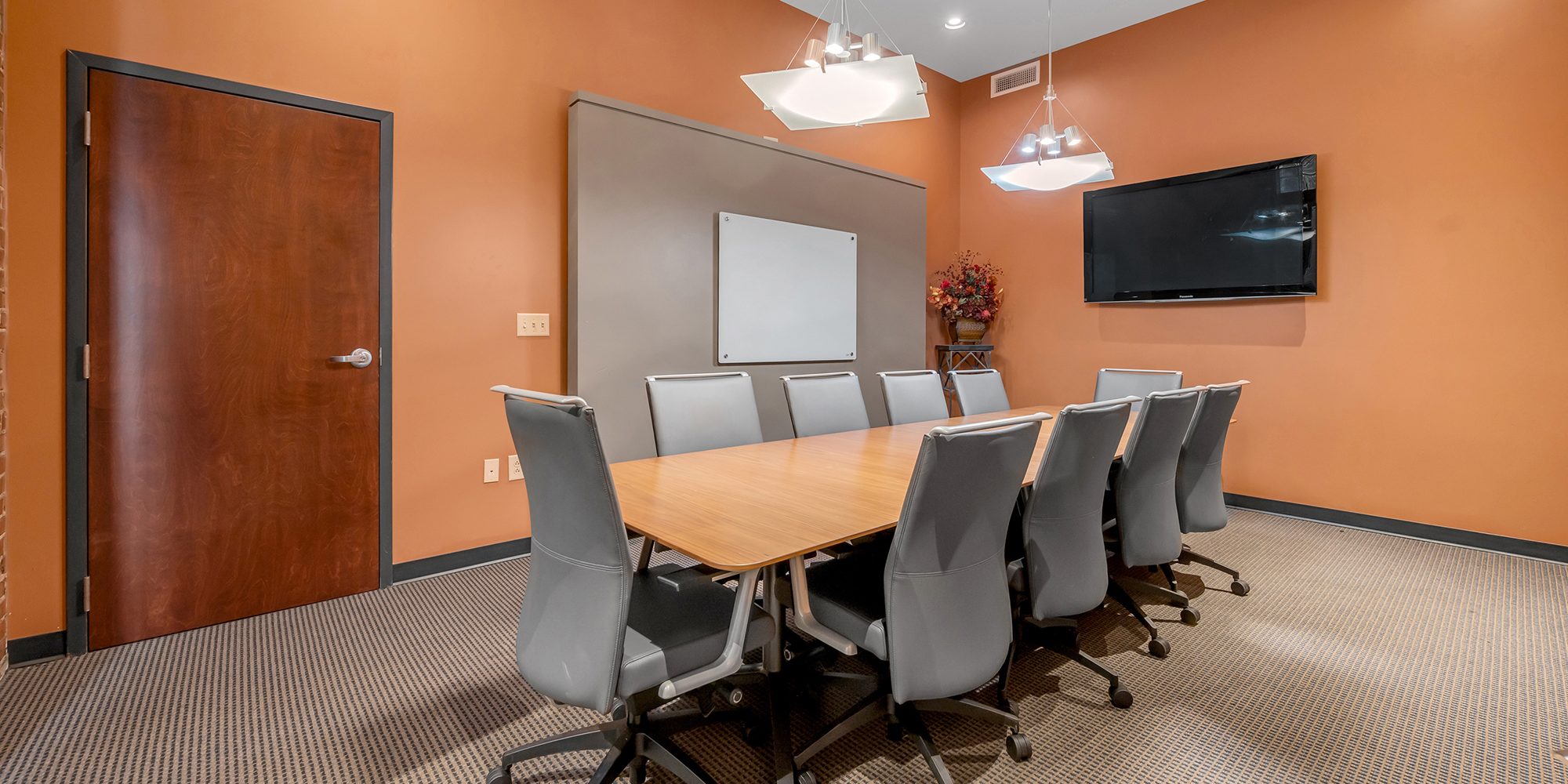 - We have one large conference room that sits 10-12 comfortable equipped with A/V equipment, reliable WIFi, white board, excellent lighting and speakers.